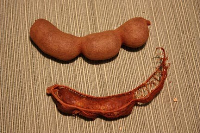 The fruit of the tamarind is most commonly reserved for consumption, whether raw or cooked or prepared in some other manner, according to the regional and cultural palate. The fruit itself is an elongated-rod, 12 to 15 cm (3 to 6 inches) in length, and covered in a hard, brown exterior.[5][6]. The fleshy, juicy, acidulous pulp of the fruit is mature when coloured brown or reddish-brown. The fruit is considered ripe when the pods are easily prized open with fingers. The fruit pod contains anywhere between 1 and 12 flat, glossy brown seeds. These may be used by children in traditional board games such as Chinese checkers (China), dakon (Java), among others. – Wikipedia